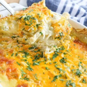 Absolutely! Rotisserie chicken is my go-to for convenience, but you can also use leftover grilled chicken, poached chicken, or even canned chicken (drained well). Just make sure it’s cooked through before adding it to the casserole.