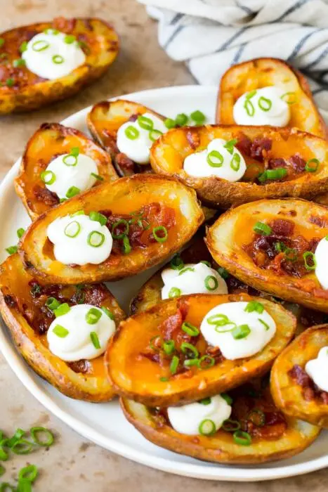 - Vegan Potato Skins: Substitute dairy-free cheese and sour cream. Use plant-based bacon or tempeh bacon for a vegan-friendly version.